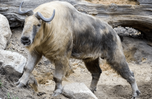 The Takin, or gnu goat is Bhutan's national animal. It lives in forested areas in mountain areas of 4,000-meter altitudes and above. Takin’s have a stocky body on short legs with two-toed hoofed feet. It has a long nose and stout horns. These animals feed on bamboo, grass, leaves, and other plants. Takin are rare, therefore they are anendangered species.
