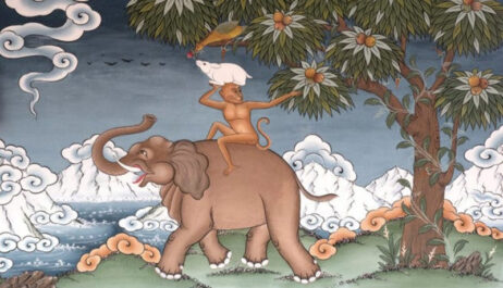 Buddhist paintings are found in dzongs, goembas, and lhakhangs. The hand-painted murals tell stories that deliver messages of peace and harmony. One example is the Thuenpa Puen Shi (Four Friends) mural depicts the harmonious efforts between a monkey, peacock, elephant, and a rabbit. The four decided to work together to grow fruit that they all wanted to eat. Each had a job and through cooperation and harmony, they were able to reach the fruit after it had grown into a tree.